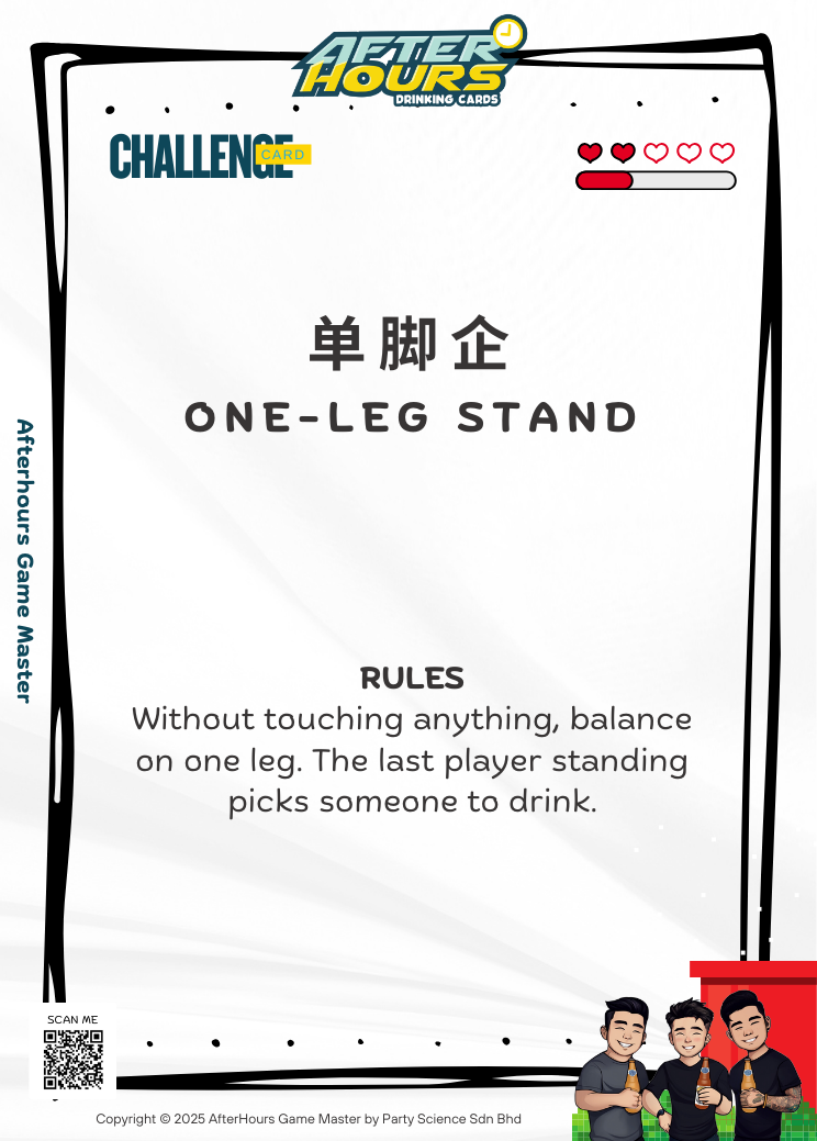 Tips:Stay focused and loosen up your stance. Don’t laugh too hard or you’ll lose balance fast. Great for testing stability (especially after a few drinks).