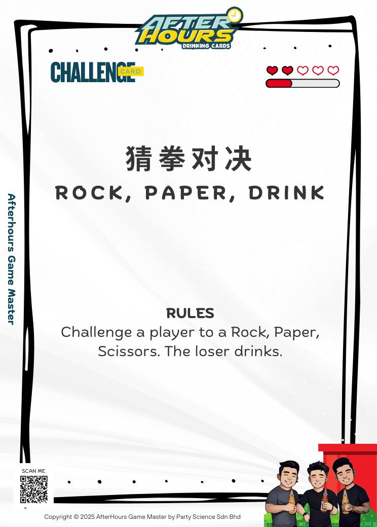 • Challenge Cards – Fast-paced group reactions & mini face-offs.